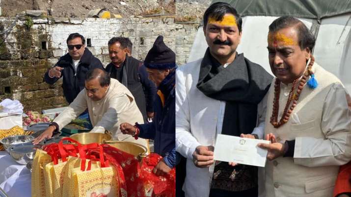 Reliance Industries chairman Mukesh Ambani on Sunday (October 20) offered prayers at Kedarnath and Badrinath shrines in the picturesque state of Uttarakhand. Mukesh Ambani donned a white kurta-pajama paired with a beige Nehru jacket for the occasion.