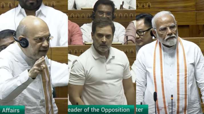 Parliament Session: Leader of Opposition in Lok Sabha Rahul Gandhi on Monday (July 1) addressed the House for the first time after being appointed to the post and took on the BJP-led NDA government at the Centre over a range of issues. He flashed the portrait of Lord Shiva in the House and targeted Prime Minister Narendra Modi and the saffron party over ‘Hinduism’. He also spoke on other topics including NEET-UG paper leak, Agniveer and farmers, which also drew reactions from the treasury benches.Rahul Gandhi takes on BJP over ‘Hinduism’, Agniveer, NEET, farmers; PM Modi, Amit Shah respond | VIDEOS